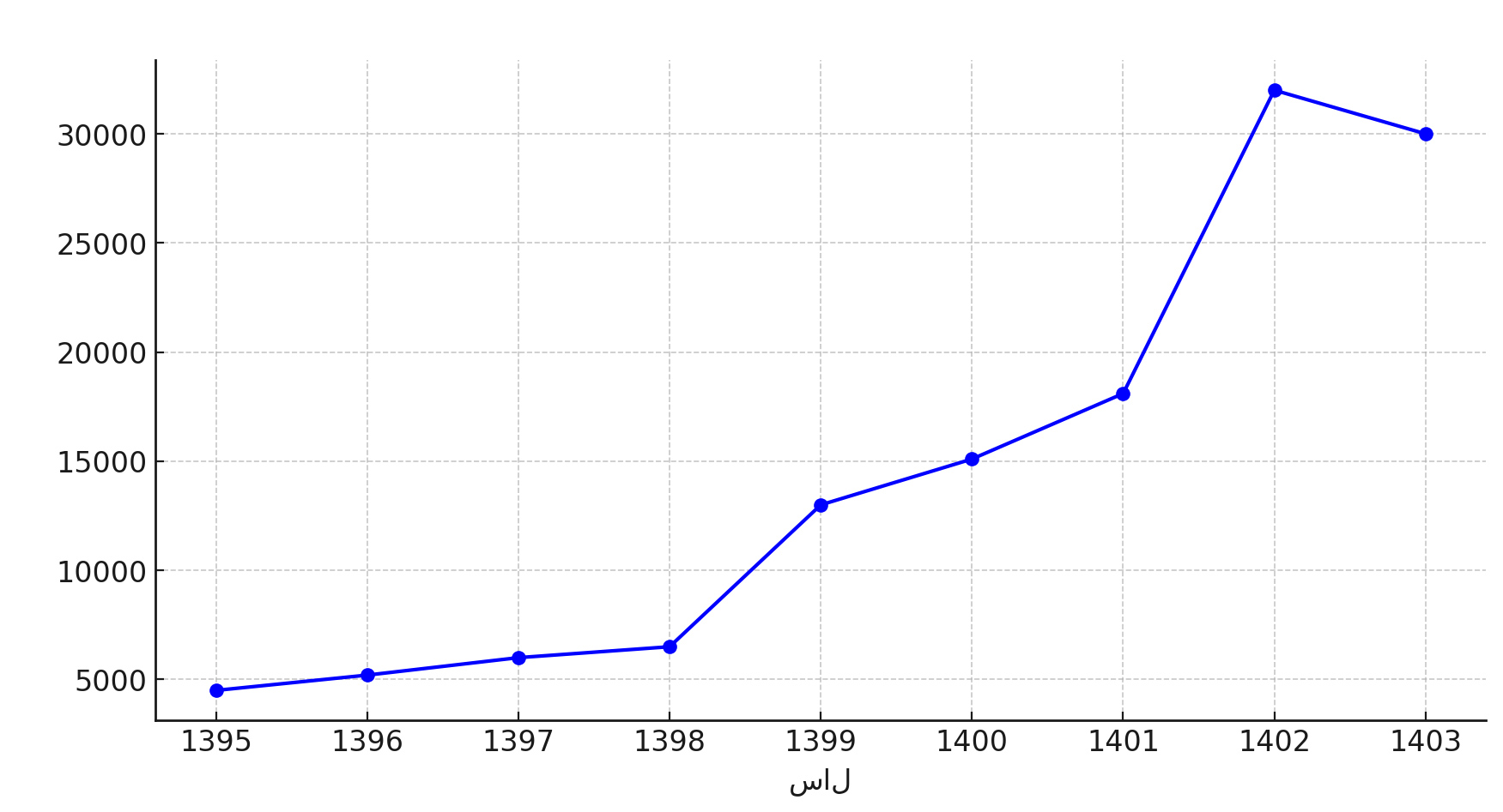 نیمه دوم سال: قیمت از ۱۳,۰۰۰ تومان به ۱۳,۱۰۰ تومان افزایش یافت که نشاندهنده افزایش ۱ درصدی است. هرچند قیمت در این بازه تقریباً ثابت بود، اما نوساناتی بین ۱۰,۰۰۰ تا ۱۴,۰۰۰ تومان مشاهده شد.